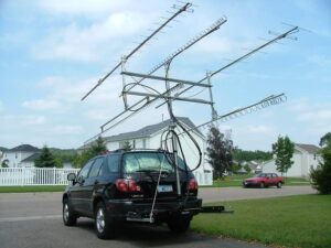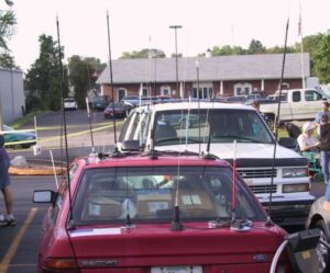 În mobil lucram cu o antennă dual bend de la Sirio și binențeles antenna de CB Prezident (Alabama), cu care ascutaltam și celelalte benzi de unde scurte.